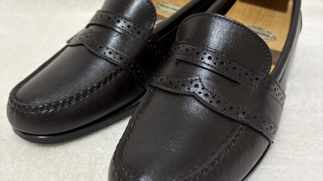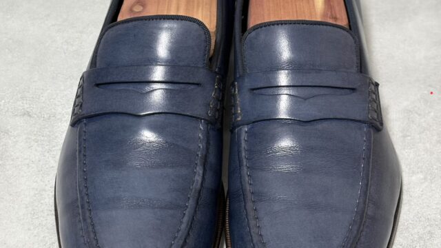 はじめに履きジワが深く入り、革が乾燥して白っぽく見えるローファー。「もう寿命かな?」と思われがちな状態でも、革が生きていれば、手入れでまだ十分に履けます。今回は、乾燥と履きジワでくたびれた黒ローファーを、磨き直して整えるまでの記録です。新品...