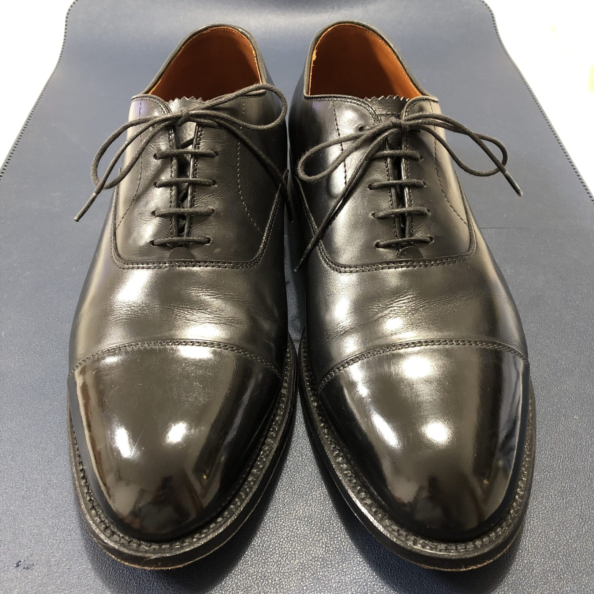鏡面磨きの完成です。シューケアの靴磨きと合わせると40〜1時間ほどかかりました。